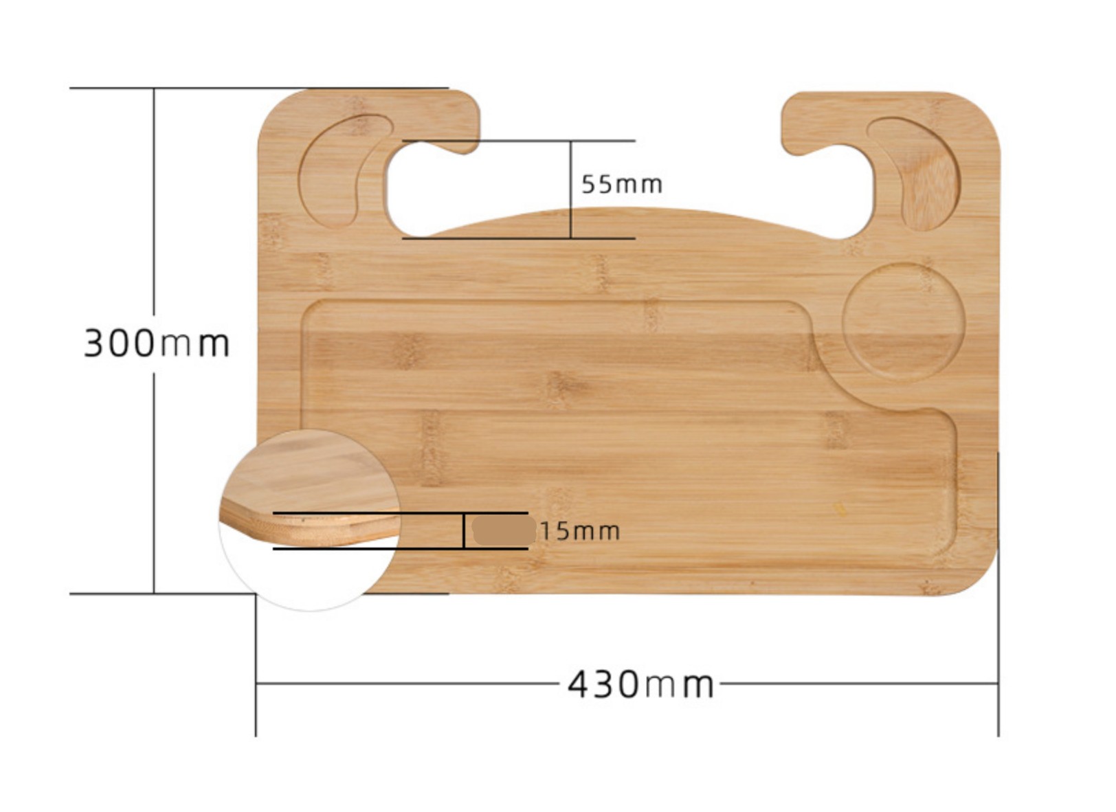 + 1 mặt thiết kế lõm xuống để trái cây, bánh kẹo, đồ ăn vặt, có 1 lỗ tròn để nước ngọt, coffee...