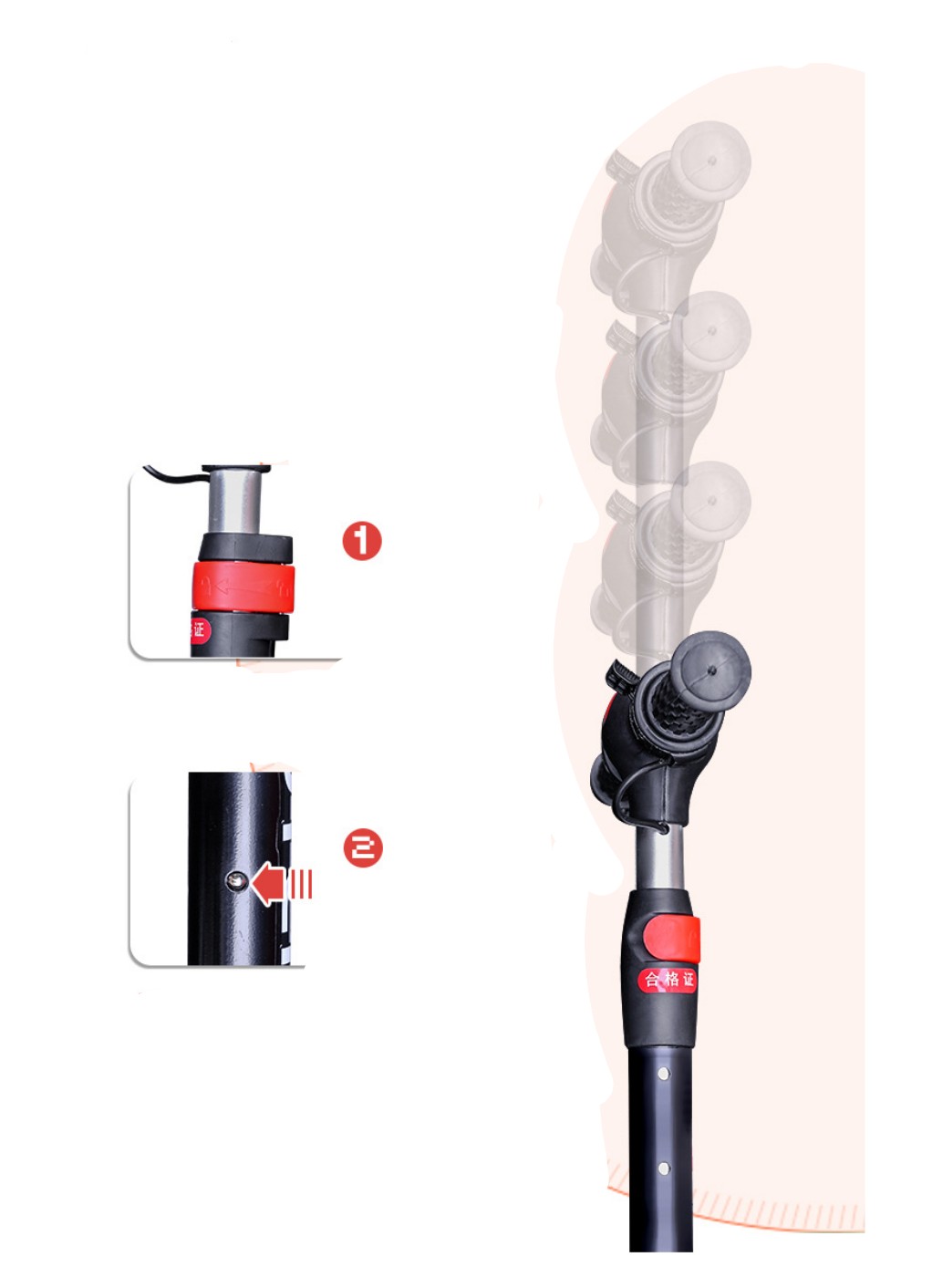 + Cách nâng hạ cổ xe: mở khoá cổ xe màu đỏ hình chiếc khoá và đẩy sang phía bên phải, ấn nút màu bạc thụt vô trong thân xe rồi nhấc cổ xe lên theo các nấc, tối đa 4 nấc. Khi hạ cổ xe bạn làm tương tự và khoá lại sang bên trái. Có thể dùng đầu bút bi hỗ trợ việc ấn các nút.